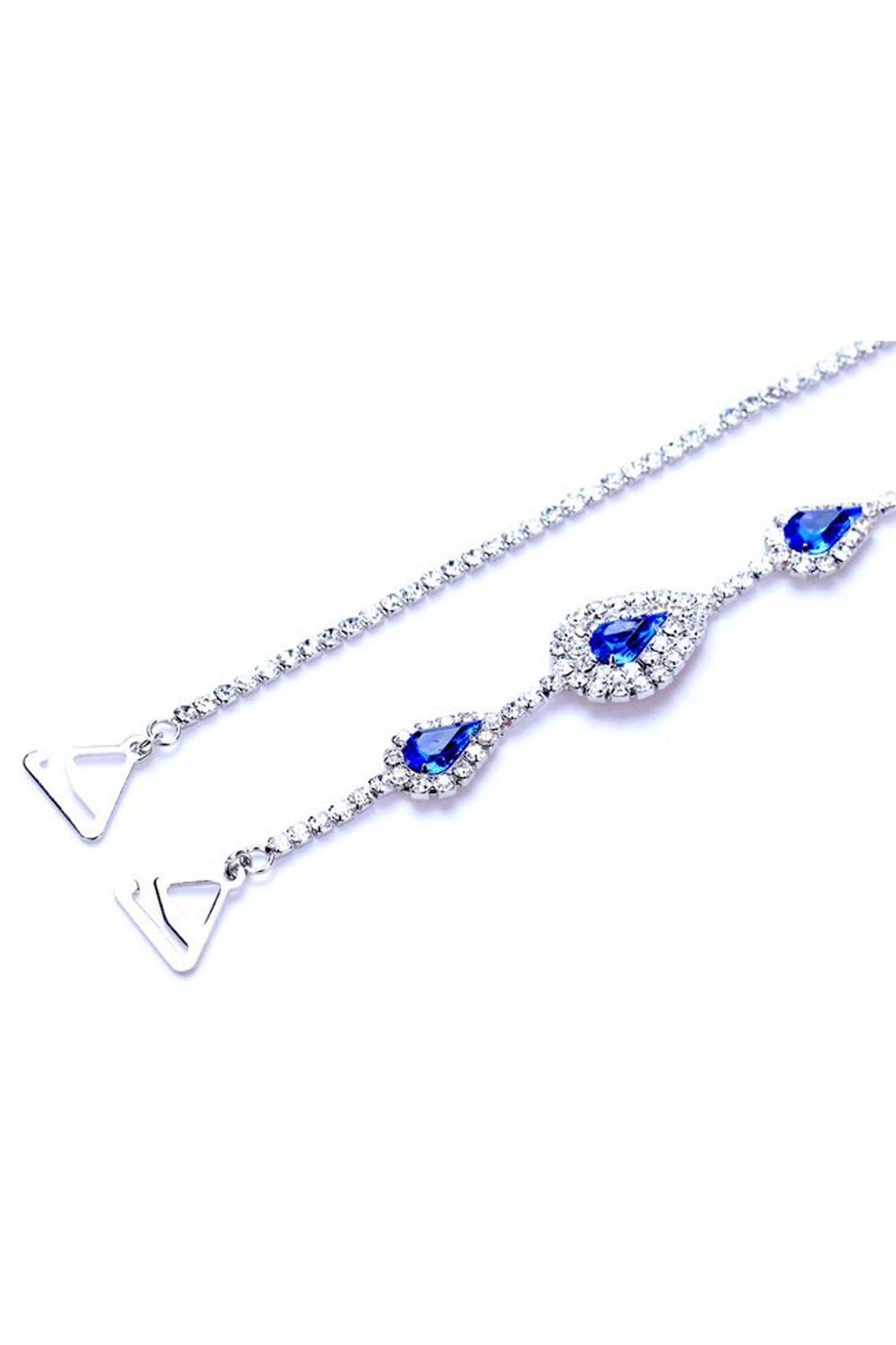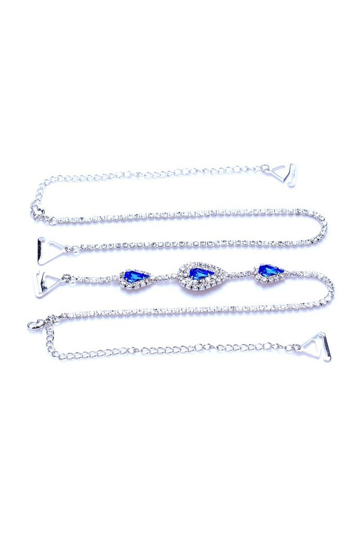 Featuring unique removable bra straps, a silver & blue crystal rhinestone design, diamante detailing in a tear drop pear shaped sculpture, with a silver tint. These are perfect with detachable bra or dress straps to give that unique finish. Simply hook onto your bra, dress, or bikini top.