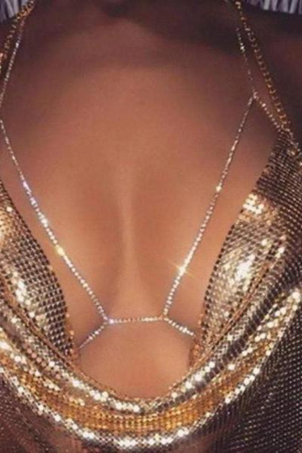 Sexy Rhinestone Shining Diamond Neck Claw Belly Chain Fashion Bikini Waist Link Necklaces Body Jewelry Women Summer Accessories
