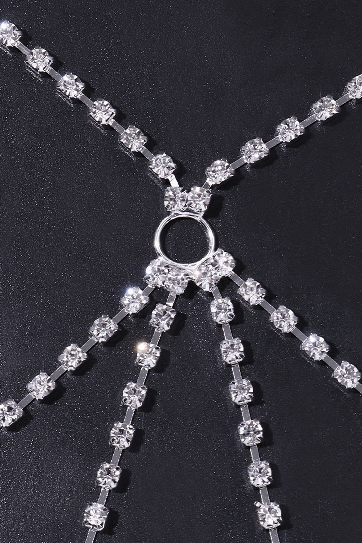 Y2K Silver Crystal Rhinestone O-Ring Layered Chain Body Harness, Dainty Festival Bikini Necklace Belly Body Chain (48 Hour Dispatch)