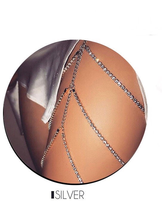 Thigh Chain, Crystal Body Chain, Multi-Layer Silver Finish Body Jewellery Chain (48 Hour Dispatch)
