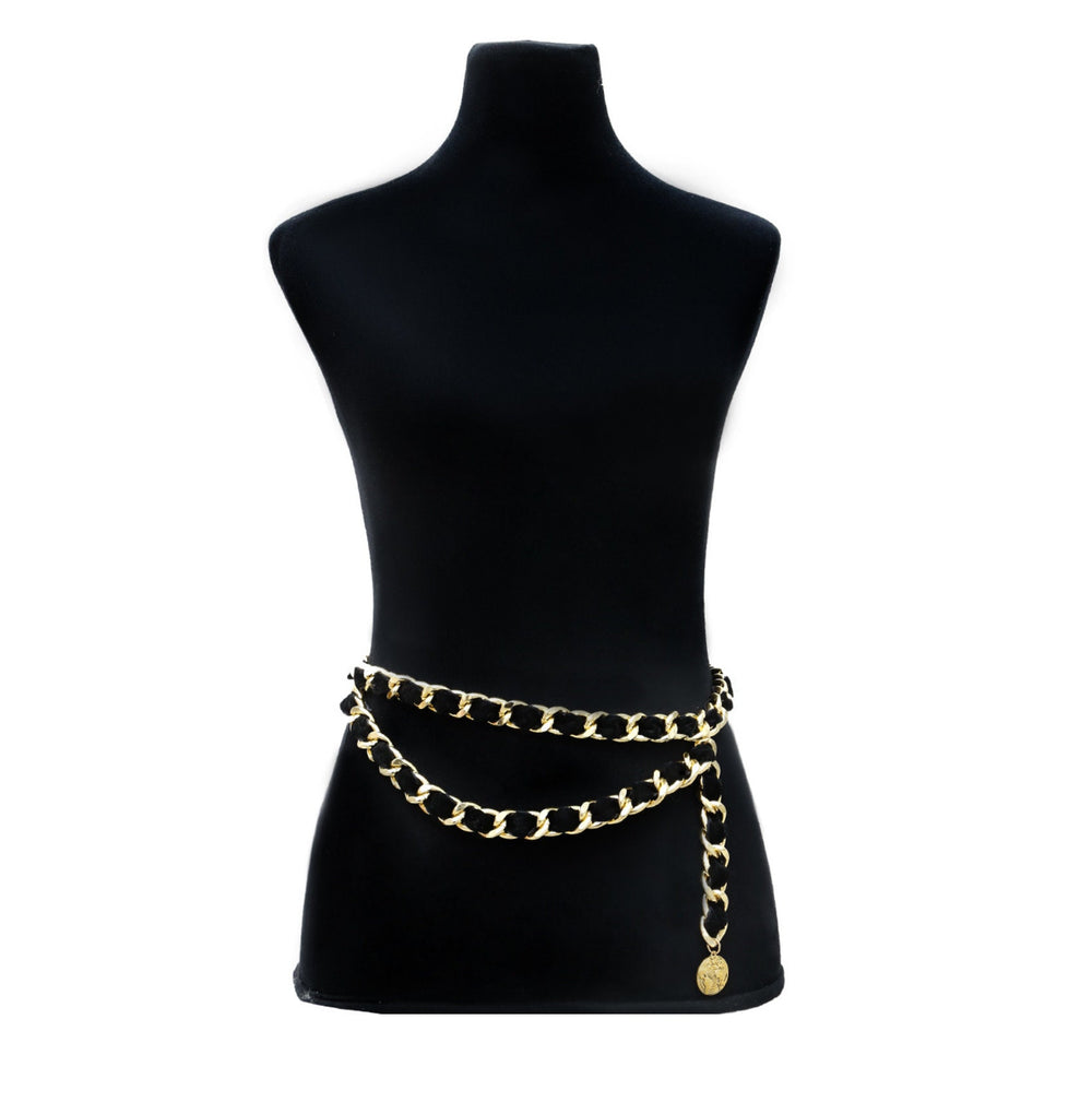Gold Belt, Waist Chain, Body Chain, Multilayer Gold Finish Body Jewelry Chain for Women, Tassel Chain, Black Belt, Gold Chain