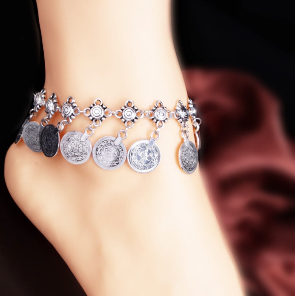 Silver Coin Anklet, Ankle Bracelet, Indian style bell Anklet, Boho Ankle Chain, Ideal Gift (48 Hour Dispatch)
