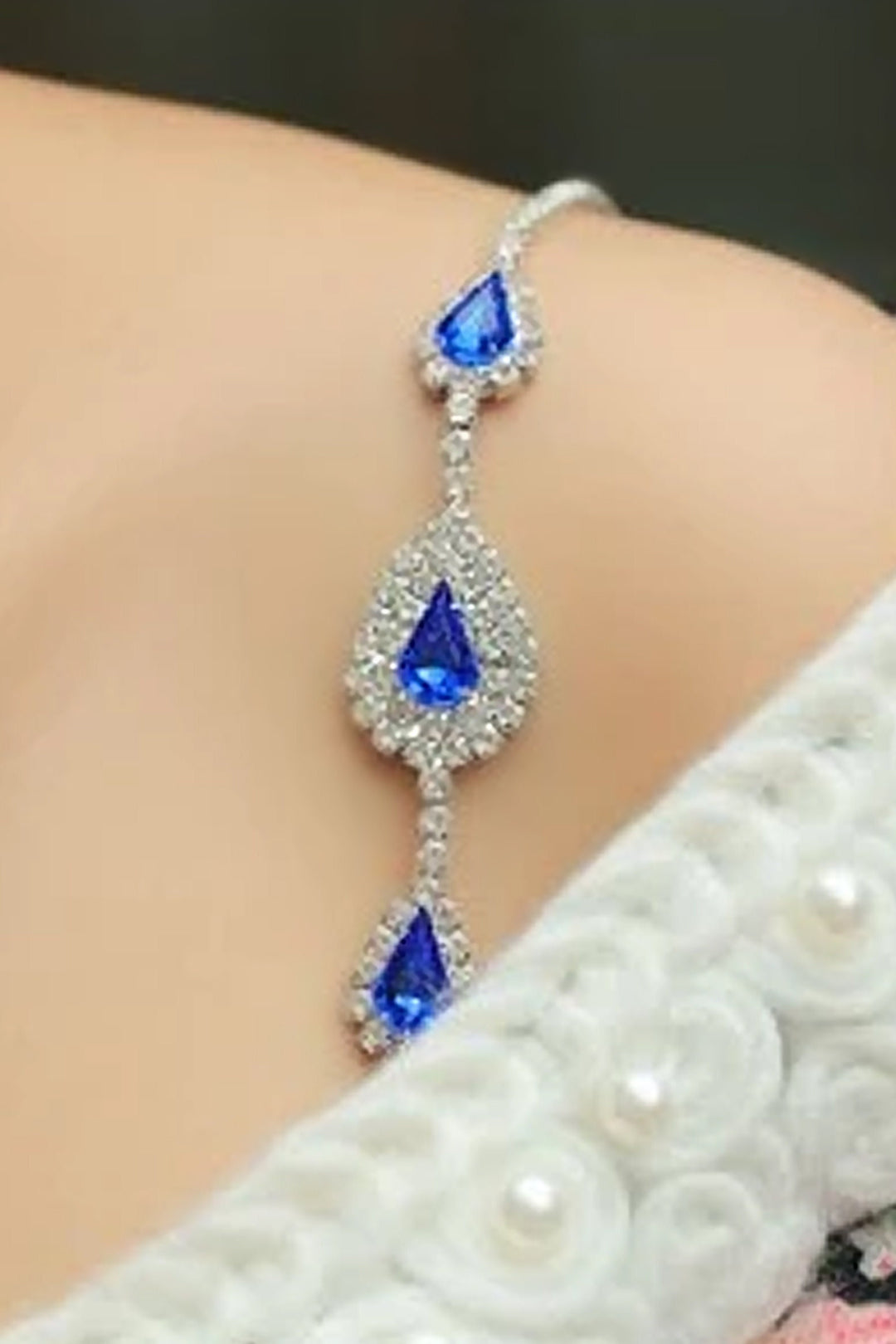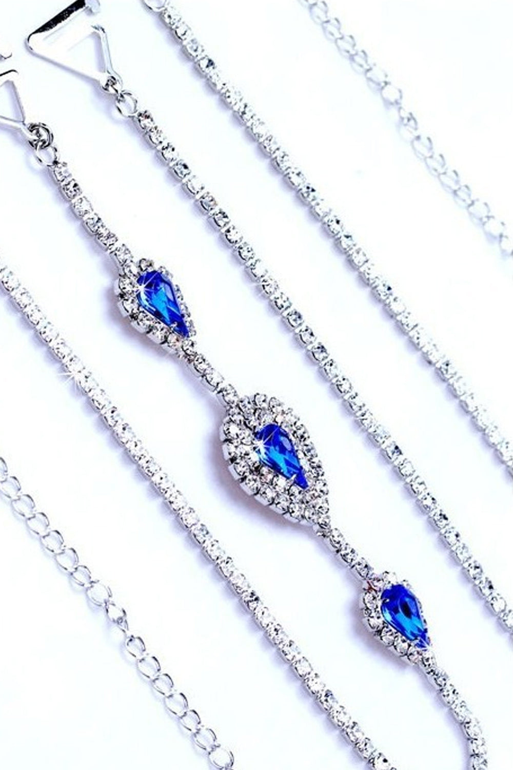 Silver & Blue Crystal Rhinestone Bra Strap, Body Jewellery Chain Removable Bra Strap, Dress Strap, Cami, Crop Top and Bikini Strap (48 Hour Dispatch)