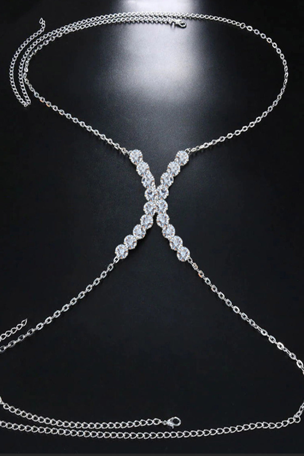 Chunky Crystal Rhinestone Bra Body Chain Harness, Minimalistic Festival Bikini Necklace Body Chain, Available in Silver & Gold (48 Hour Dispatch)