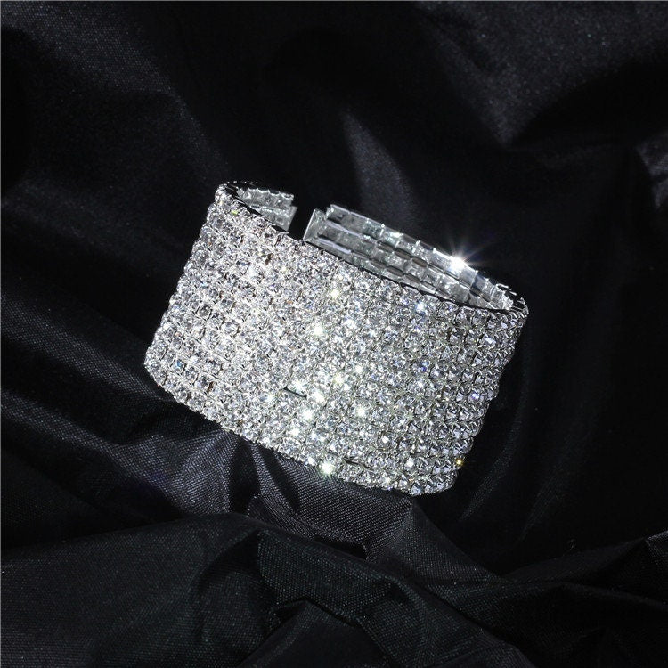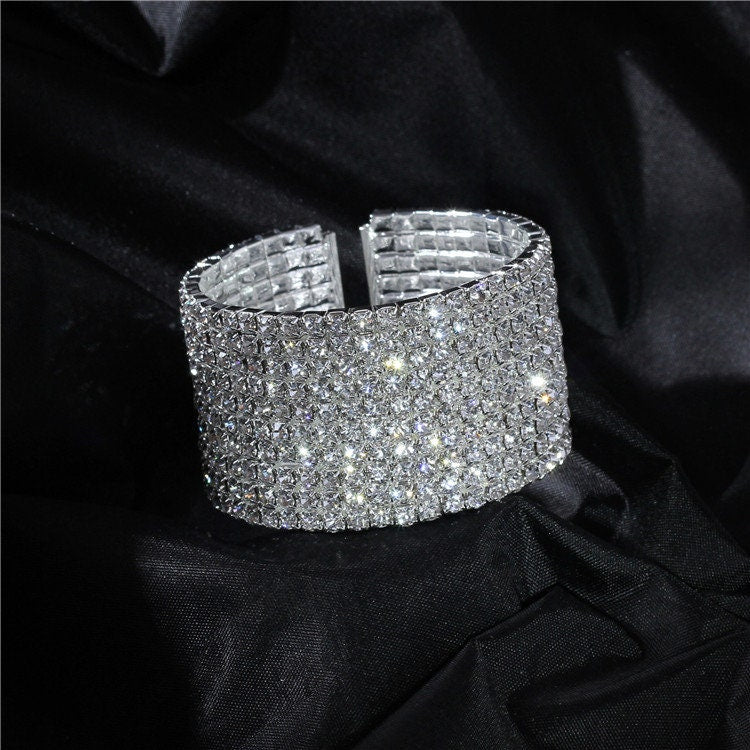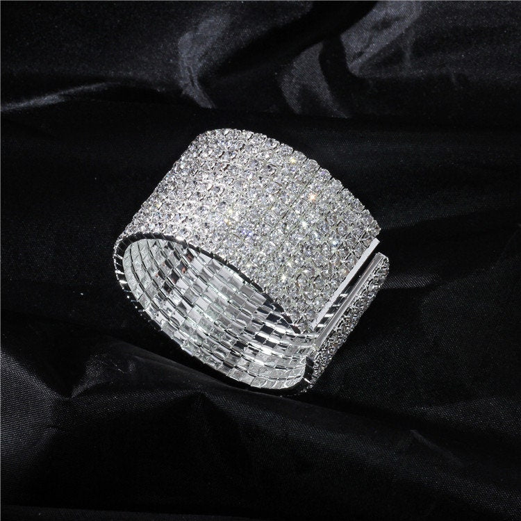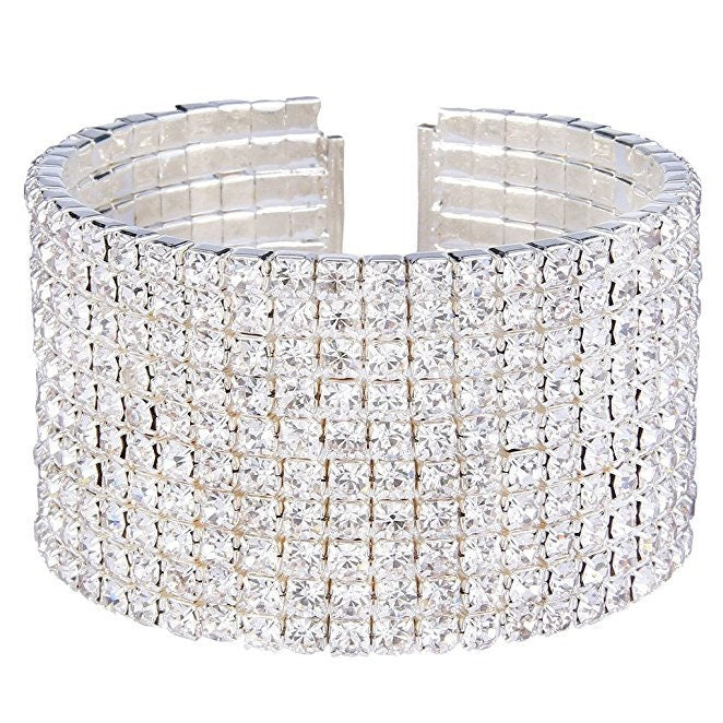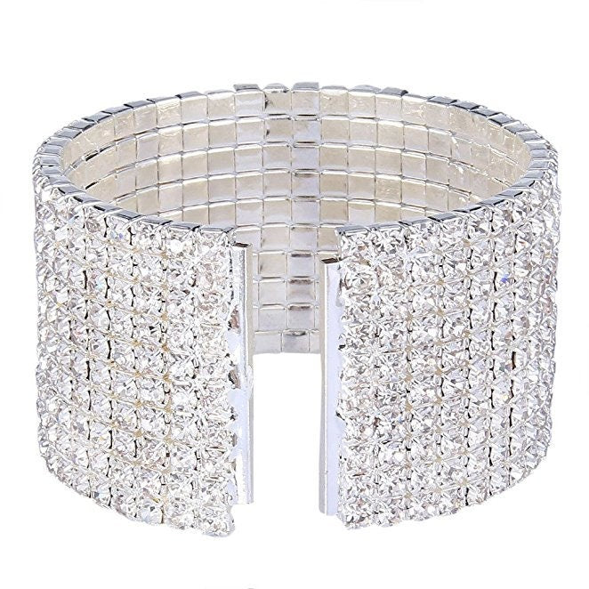 Silver Diamanté Crystal Wrist Bracelet, 10 Rows Rhinestone Crystal Bracelet, Slide On, Ideal Gift