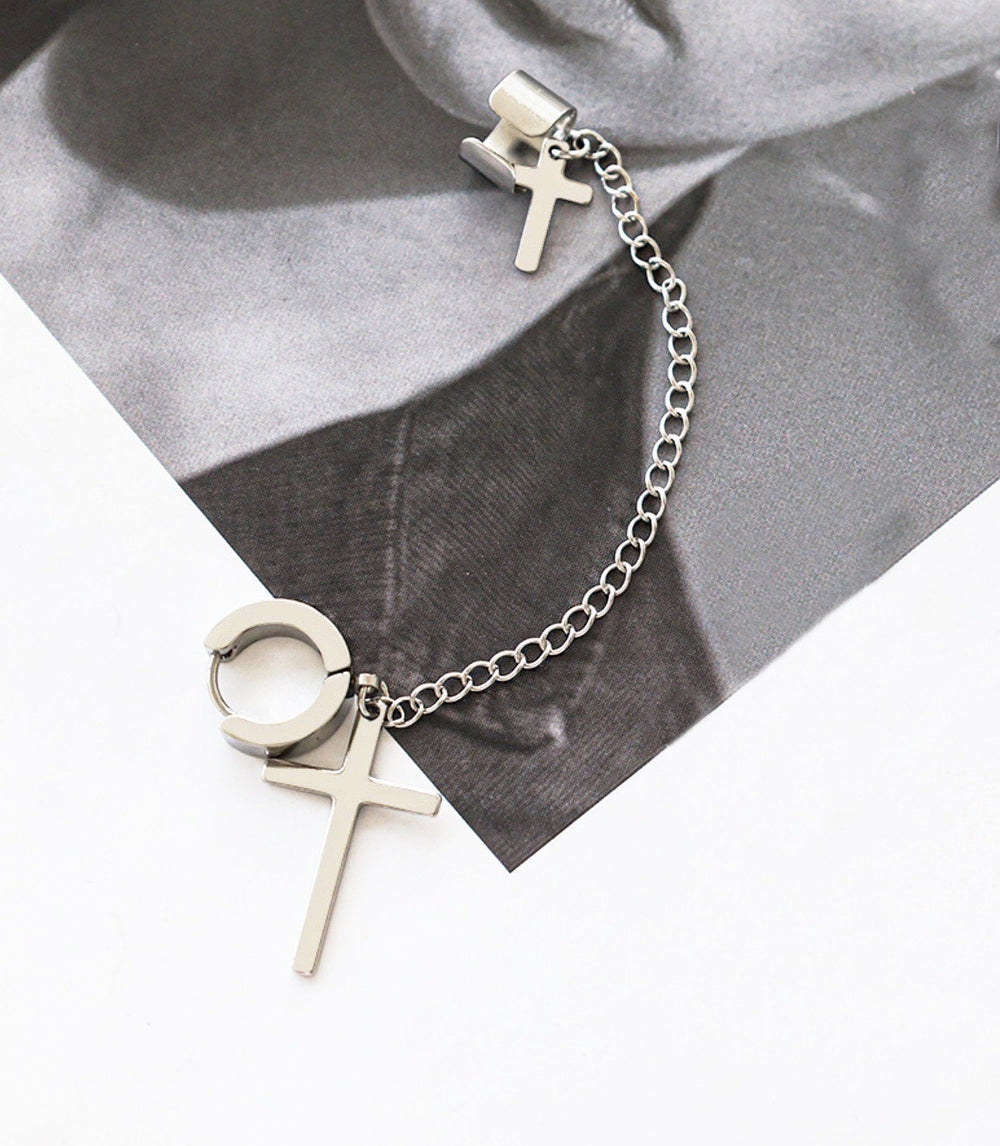 Cross Ear Chain Piercing, Body Jewelry, Punk Ear Piercing with Helix linked chain, Lobe piercing, Faux Helix Piercing